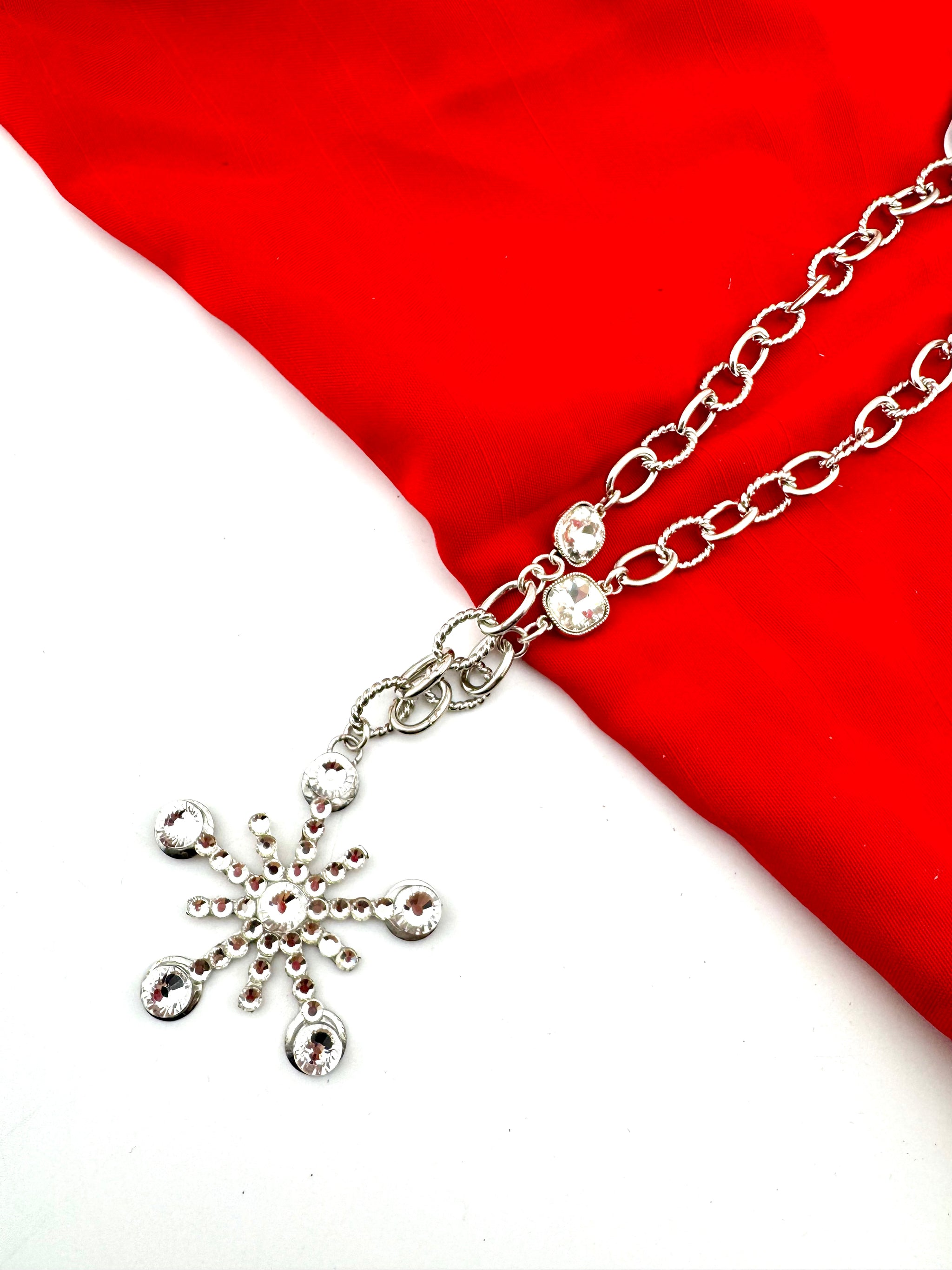 Add a touch of winter magic to your look with our Arctic Bloom Necklace. Featuring an 18-inch chain and a dazzling 2.5-inch bling snowflake pendant, this piece captures the sparkle and beauty of freshly fallen snow. Perfect for holiday outfits or adding a frosty pop of shine all season long.